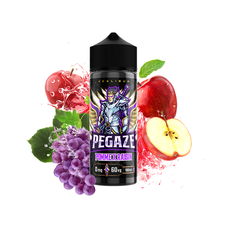 ¿Te encantan las mezclas frutales? El aroma a uva negra dulce y manzana ácida componen la receta de Pegaze 100 ml , un e-líquido económico de la marca Xcalibur .